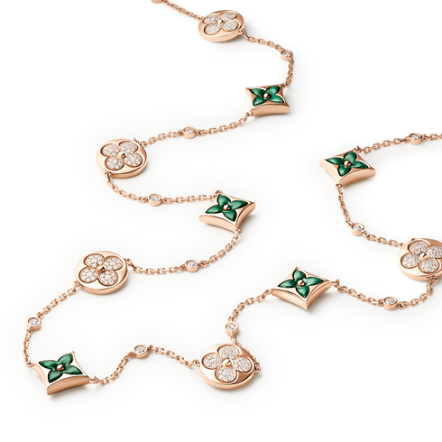 Highlighting a harmonious blend of unique stones and golds, Louis Vuitton Color Blossom plays with the delicate volumes of the iconic Monogram Flower. Boldly paired together for infinite chromatic combinations, earrings, rings, bracelets, and necklaces mingle in a convergence of color.