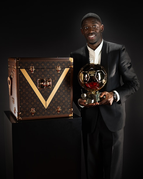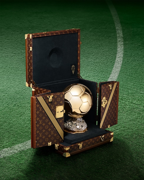 As the Official Trophy Trunk Partner of the Ballon d’Or™, Louis Vuitton presents two custom-made creations, designed to hold the prestigious Women’s and Men’s football player awards in – showcased on stage during the 68th ceremony on October 28th, 2024. Embodying the Maison's iconic codes, each trunk is finished in Monogram canvas and features a golden V motif – symbolizing “Victory” and “Vuitton”, while matching the splendor of the Ballon d’Or™ itself.