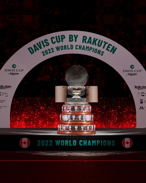 In 2022, the Davis Cup trophy was presented in a bespoke Louis Vuitton Trophy Travel Case, marking the third year of the Maison’s collaboration with the prestigious tournament. Covered in the iconic Monogram Macassar canvas, the unique circular trunk sits atop the cup’s remarkable oversized base, opening at the top and on two sides to create a perfect showcase.