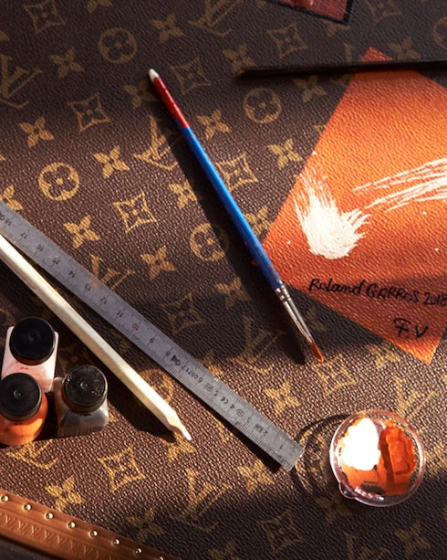 Louis Vuitton joined forces with the French Tennis Federation for the 2017 and 2018 editions of Roland Garros. The trophies were presented in their trunks before the kick-off finals match for both the Women’s Singles and Men’s Singles, and along court-side. The collaboration results in trunks adorned with the iconic Monogram canvas and a terracotta-colored interior evocative of clay, while a 'V' reminiscent of the lines on a tennis court adds the finishing touch.
