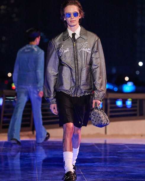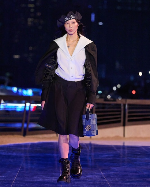 Staged under the stellar night sky at the waterfront Avenue of Stars, the scenography of Creative Director Pharrell Williams' new collection evokes the Maison's transcendent spirit of travel, transposing the shores of Hawaii to Hong Kong.