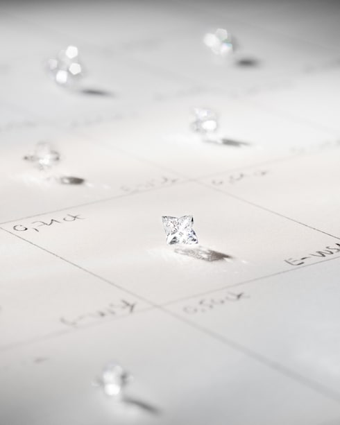 A diamond’s journey from Earth to jewelry starts when it is sorted and selected in its rough state according to its shape, color, clarity, and fluorescence. Louis Vuitton only selects the finest rough diamonds, carefully planning the optimal way to cut each stone and bring out the best of its potential.
