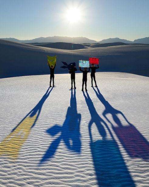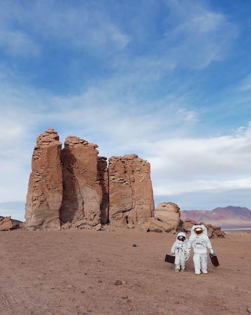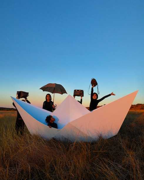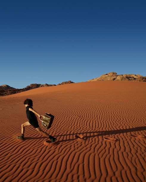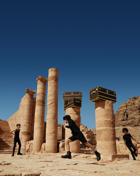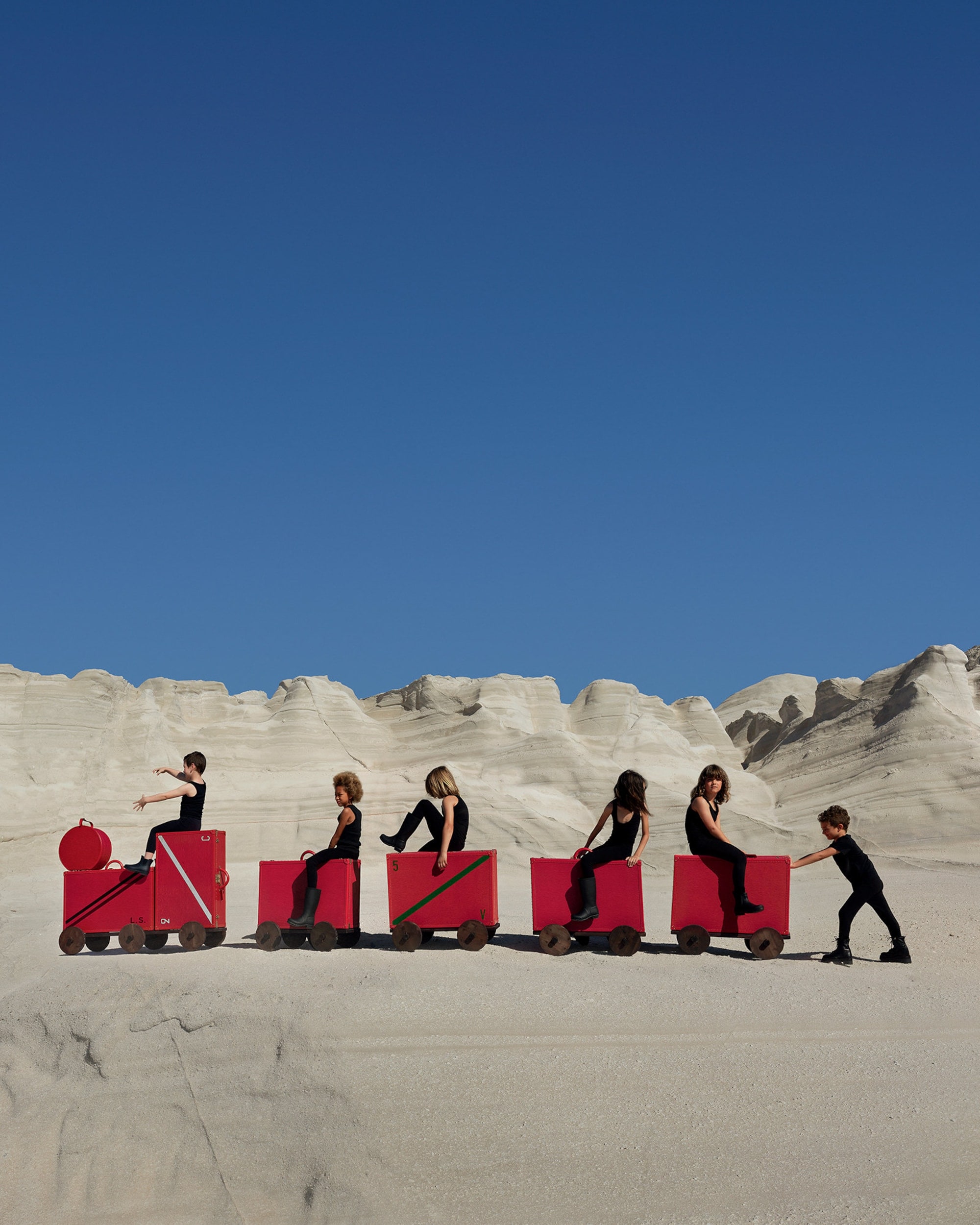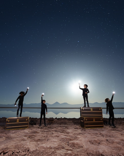 Louis Vuitton embarks on a far-reaching journey, exploring dreamlike settings around the globe in an evocative ode to the inner child. Traversing the wild surroundings of Austin, Texas, photographer Viviane Sassen captures a young boy and his band of friends as they set out an adventure, with the iconic Louis Vuitton trunk as their imaginary vessel. In the wide Texan desert, perspectives are played with, shadows enlivened, and nature harnessed.