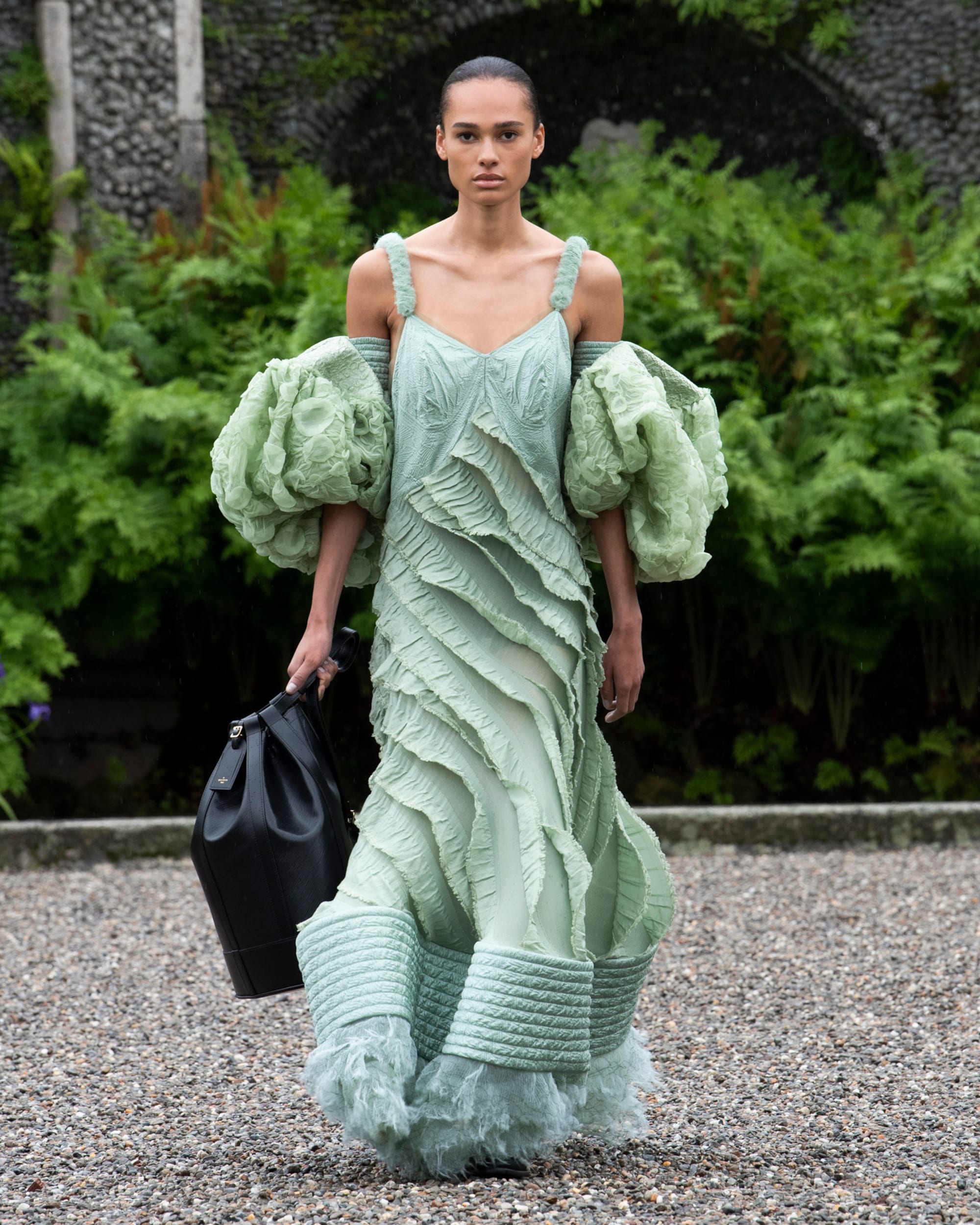 Imagined as a tale of the extraordinary, the collection is open to a myriad of influences revealing a hybrid elegance of baroque opulence and neoprene. Like Isola Bella, a ship of greenery sailing between myth and reality, Nicolas Ghesquière finds the new balance of a contemporary femininity and ultra-romance in this paradoxical notion.