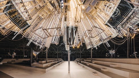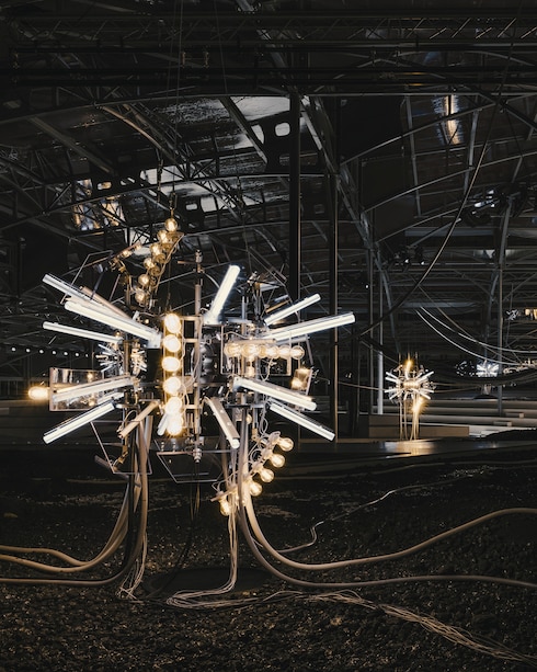 Reminiscent of a luminous glasshouse imbued with the pulsating energy of sculptural chandeliers, the futuristic scenography was designed once again by renowned artist Philippe Parreno and production designer James Chinlund.