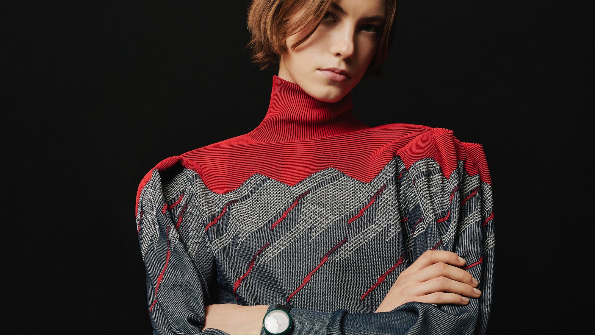 In a display of bold eclecticism, technical outerwear and ruffled gowns are accompanied by emblematic bags, shoes, and accessories in striking proportions. Infused with vibrant pops of color and graphic prints, the collection features a collaboration with electro group Kraftwerk.