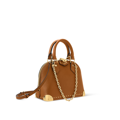This edition of the Alma Trunk BB is offered in a timeless smooth calfskin. It is defined by gleaming gold-toned hardware, from the signature padlock to the trunk-inspired corners and decorative chain. Elegant and functional, it is sized to fit daily essentials and includes a flat pocket to keep a cardholder or smaller items secure.