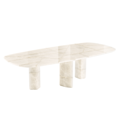Created by the acclaimed Argentinian designer and artist Cristián Mohaded, the Atlas dining table features an intriguing interplay of contrasting materials. Its elegant marquetry top, crafted in white onyx and travertine, traces an intricate pattern evoking the Diamond Monogram, while its faceted legs convey an impression of strength and grandeur. This magnificent table takes its place in the dining room like a sculpture, emanating an aura of contemporary chic.