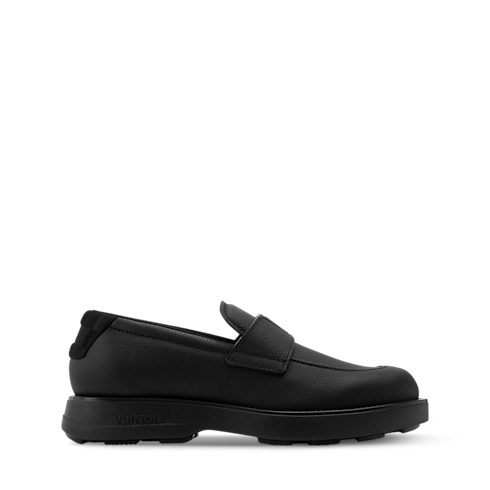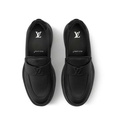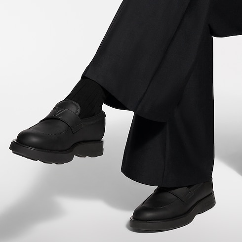 The Bastille loafer comes in Aerogram grained calf leather, an emblematic material of Louis Vuitton leather goods, characterized by its durability and matte finish. The strap on the upper bears the LV Initials signature, while the neoprene trim at the back is embossed with the Damier pattern. A chunky yet lightweight rubber outsole finishes this design.
