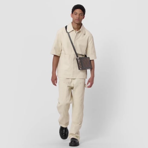 An homage to Louis Vuitton’s trunk-making legacy, the compact Clutch Box is a hardsided bag for men unveiled at the Spring-Summer 2020 Show. Made from Monogram canvas with black leather trim and rivets, this bag has an adjustable strap for shoulder and cross-body carry. An inside zipped pocket and two large gusseted compartments make it practical.