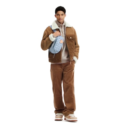 This cozy shearling trucker jacket adds a luxurious twist to a casual silhouette for chic après-ski moments. The collar, yoke and sleeves are all crafted from soft shearling, while the body is assembled from thick-ribbed corduroy. Louis Vuitton savoir-faire informs the signature accents in iconic VVN-colored leather on the sleeve, back and leather zipper puller. Matching corduroy pants complete the look.
