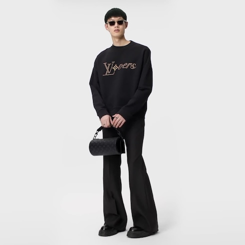 This comfortable black cotton crewneck features a studded LV Vers signature from the SS24 Show, which is applied across the chest and incorporates an embroidered Monogram Flower. Perfect for casual days around town, this transeasonal piece pairs easily with denim pants and chinos.