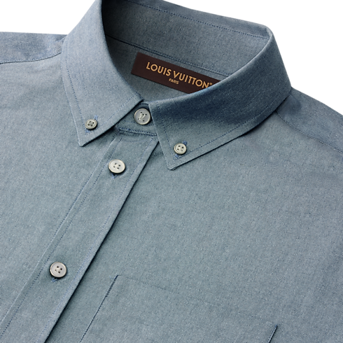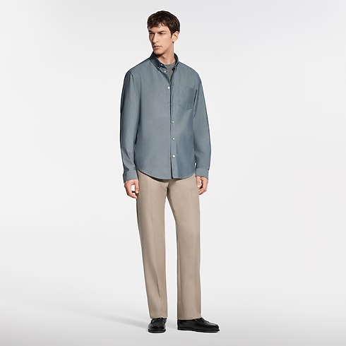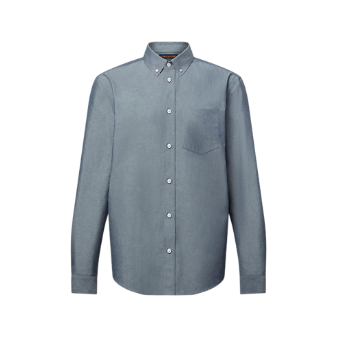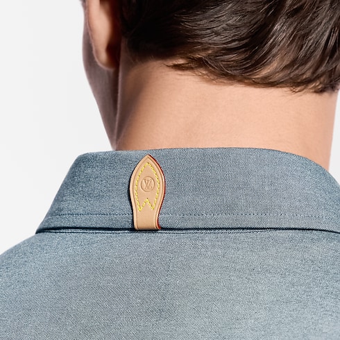 This long-sleeved cotton-silk chambray shirt offers comfort and breathability with a smooth and lustrous finish. LV stitching signs the top button, while a VVN leather tab behind the collar nods to the House’s travel heritage. The beautifully draped fabric and casual style with a buttoned-down collar lends a contemporary accent to spring and summer looks.