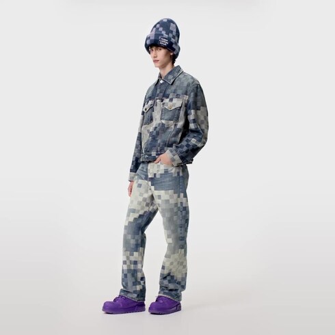 This standout denim jacket from the SS24 Show showcases the Maison’s savoir-faire, with a sophisticated washed jacquard Damoflage motif in shifting indigo tones. ‘Marque L. Vuitton déposée’ signatures are discreetly woven into some of the squares, while jewel-like buttons add a sophisticated twist. This silhouette, which flatters all body types, has matching pants for a total runway look.