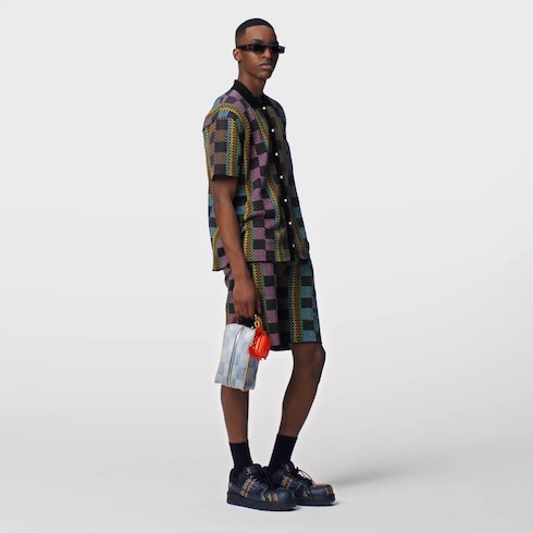 These knit shorts revisit the iconic Damier in a vibrantly-colored jacquard with a richly detailed effect. Pearl-effect stoppers distinguish the cordons, while a ‘Marque L.Vuitton déposée’ signature embellishes the leg. Crafted from light organic cotton, this piece makes a go-to summery set with a matching shirt.