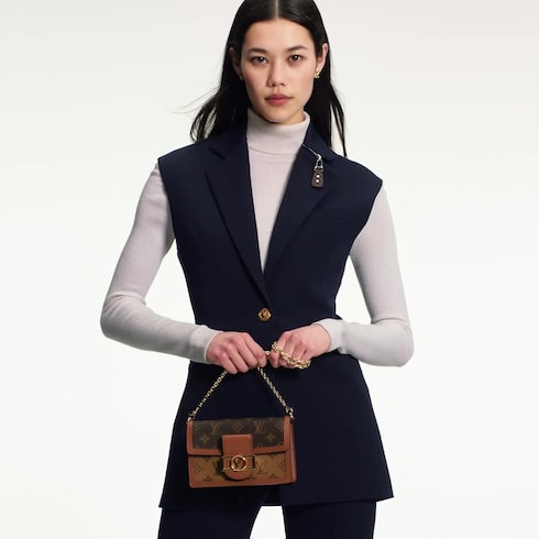 Combining Monogram and Monogram Reverse canvas, the Dauphine Chain Wallet reprises all the signatures of the iconic Dauphine collection: the vintage look, the calf leather trim and the LV Circle clasp. This neat yet spacious wallet features a removable gold-tone chain, enabling it to be carried in several different ways.