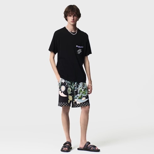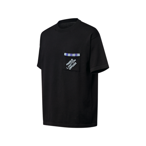 This smart black short-sleeved crewneck is elevated with embroidered beading in contrasting blue tones. It features a patch pocket on the chest with a Damier trim across the top and a ‘Marque L.Vuitton déposée’ signature, bringing a distinguished touch to everyday casual looks.