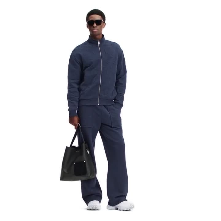 This dark blue cotton-jersey tracksuit top brings a sophisticated signature accent to casual and everyday looks. It is embellished with an allover Monogram motif, incorporated into the soft knit with an embossed effect. An easy piece to mix and match, it makes a chic set with matching pants that is particularly well suited for travel.