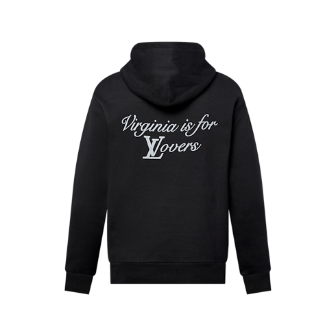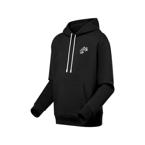 This smart hoodie is made from brushed back cotton felpa and has a lined hood, kangaroo pocket and a ribbed bottom hem and cuffs. It features one of this season’s iconic colours, set off by contrasting white cords and an embroidered white Louis Vuitton signature on the chest, underlined by a matching staple pin.