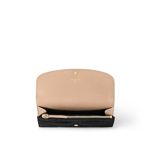 The Emilie Wallet is crafted from Monogram Empreinte leather, embossed with the iconic Monogram pattern and lined with supple grained leather in a contrasting shade. Its envelope-style flap, which is secured with a colour-matched press stud, lifts to reveal a well-organised interior with a large compartment, zipped coin pocket and card slots.