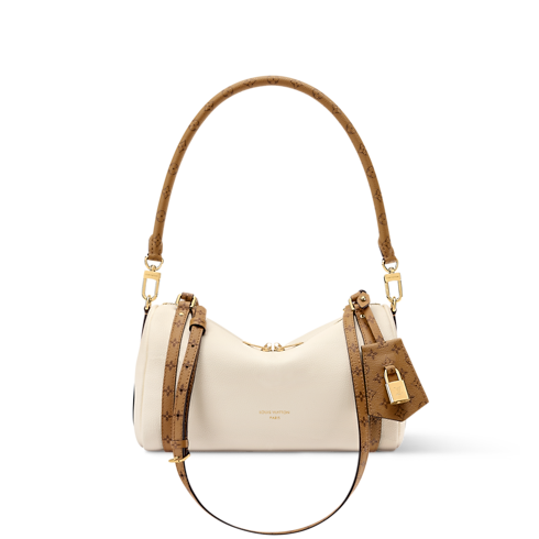 The Vanilla colorway on this Express PM strikes the balance of versatile and sophisticated. It is crafted from calfskin and trimmed with signature Monogram canvas details, including a keybell and shoulder strap. The compact design is adorned with a gold-toned padlock that can also be attached to the zipper pull if desired. Inside, there is enough room to keep everyday essentials organized.
