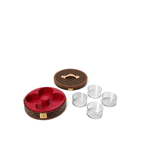 Inspired by Asian candy boxes, the Festivity Box is crafted from Monogram canvas with golden brass hardware and a sturdy leather handle. It opens to reveal four removable glass containers – perfect for nuts, candies, or other treats – nestled in a vibrant red lining. More than a box, it’s an invitation to create shared moments of pure delight.