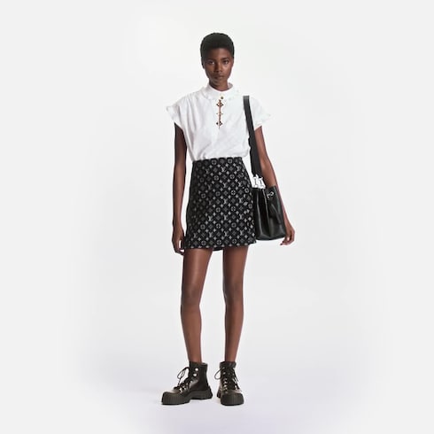 With subtle ruffle accents on the sleeves and collar, this Frill Blouse is an enchanting piece. Gold-tone details catch the light in the form of Monogram Flowers on the front and LV buttons at the neck. The blouse has been made from soft cotton poplin and features Monogram fil coupé to create an elegant piece.