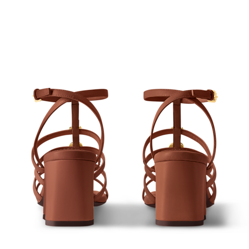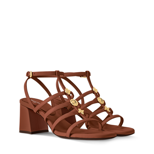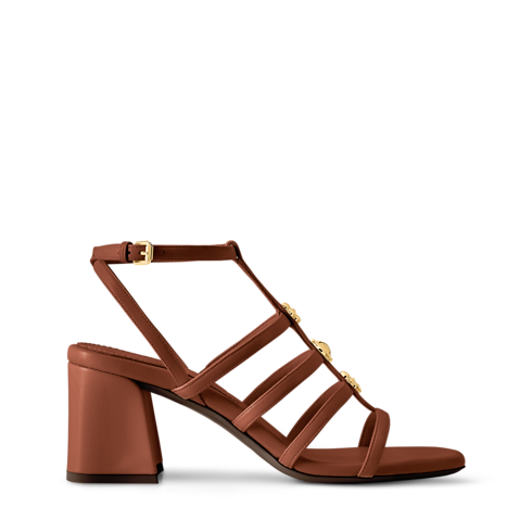 The Gaia sandal is an elegant style distinguished by its slender straps in ultra-soft napa lambskin, which are embellished with Monogram charms in gold-toned metal. It fastens at the ankle with a delicate, gold-toned buckle. A comfortable block heel, which is also covered in leather, finishes this refined design.
