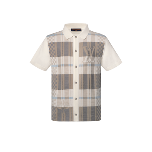 This short-sleeved shirt in a fine cotton knit is adorned in front with a plaid jacquard motif in the Spring-Summer 2026 show’s elegant beige tones. Signature elements are discreetly integrated into the motif, while a knitted polo shirt style collar and mother-of-pearl effect buttons further distinguish this refined take on everyday style.