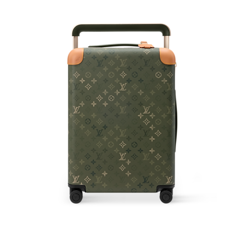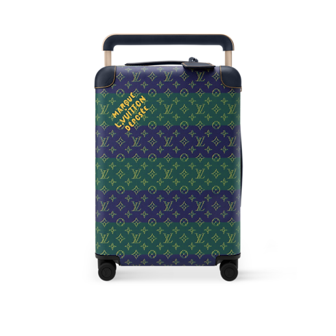 This Horizon 55 rolling suitcase in Monogram Macassar canvas, accented with vibrant touches on the reinforced corners, cane handle, and wheels, is compact enough to carry onto a plane. Yet, thanks to its external cane, the interior is remarkably spacious. The lining echoes the same bright color as the exterior accents, creating a cohesive and striking design.
