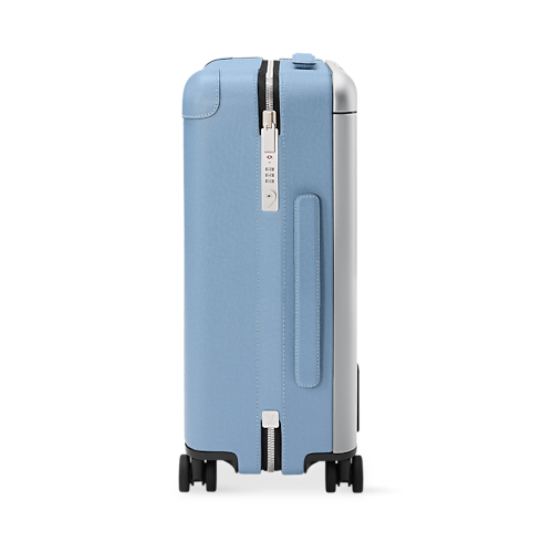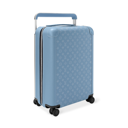 Part of the Taigarama line, the Horizon 55 rolling suitcase exudes sporty flair with its colored Monogram coated canvas and matching Taiga cowhide leather. Small enough to carry onto a plane, its interior is surprisingly roomy thanks to its external cane. The wide cane handle and four double wheels make this lightweight carry-on bag highly practical.