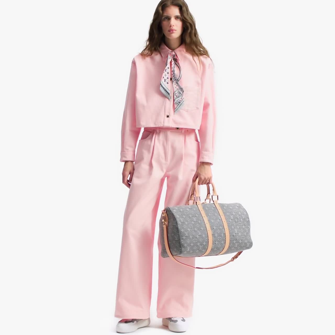The muted colorway of the Monogram Denim cotton on this Keepall Bandoulière 45 bag is complemented by natural cowhide-leather trim and light-gold-toned hardware, resulting in understated sophistication. The rivets on the lateral bands evoke the House’s vintage trunks, while the elegant top handles and removable, adjustable shoulder strap offer carry options.