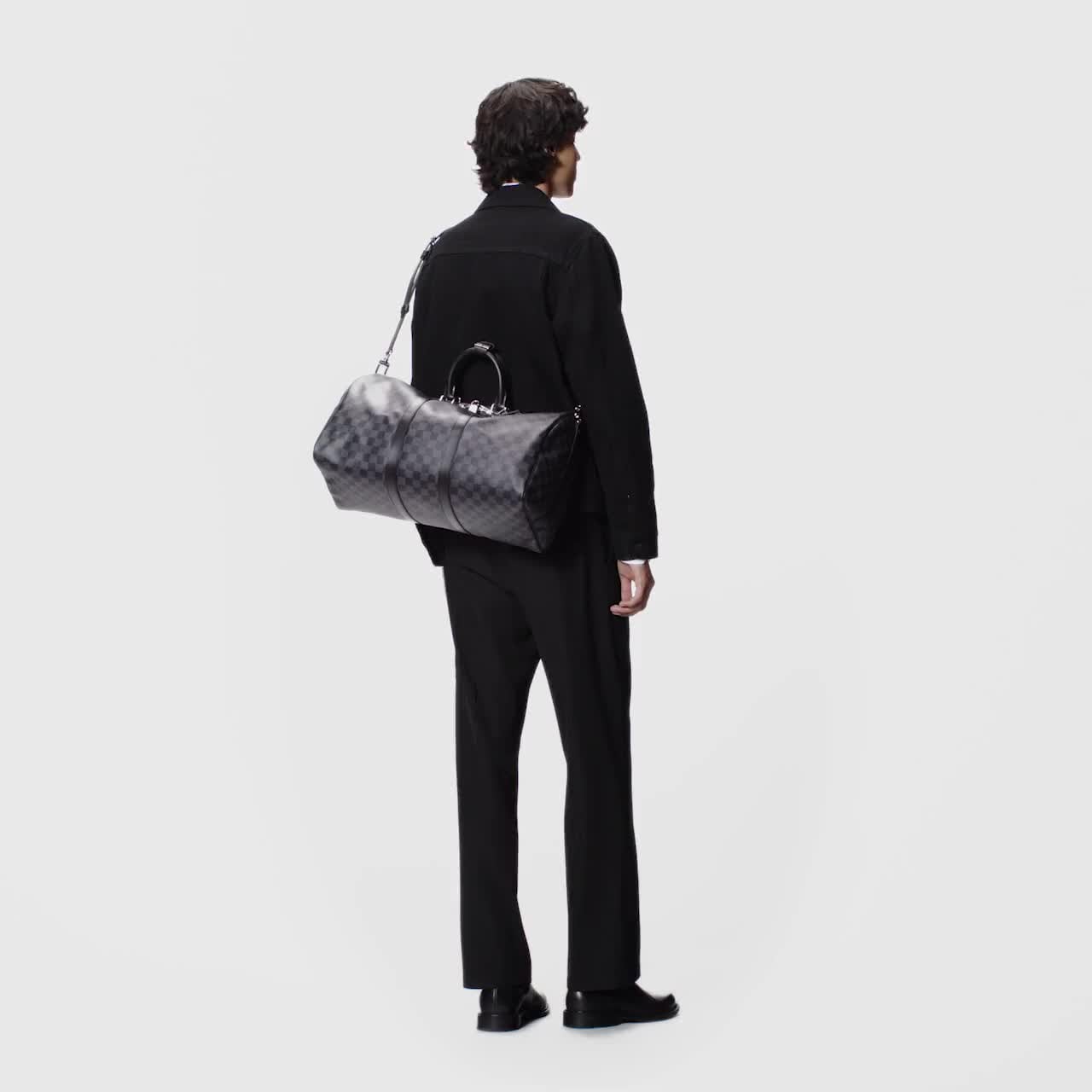 An elegant travel bag in Damier Graphite canvas. Ideal for travelling and taking all the necessities, this bag has a generous amount of space. Can be comfortably carried by hand or on the shoulder.