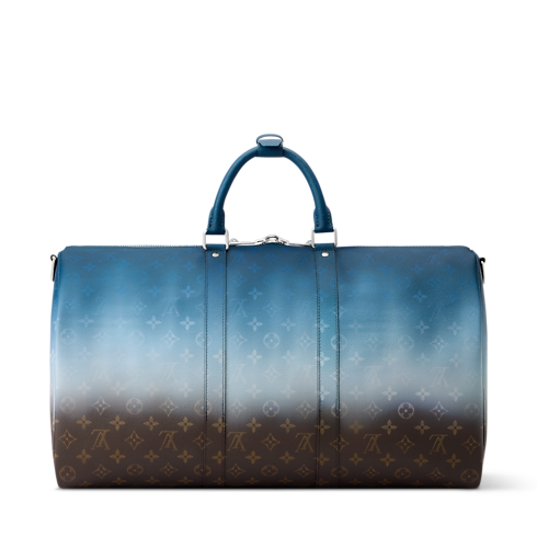 Inspired by India’s bold, colorful textiles, this Keepall Bandoulière 50 in Monogram Pigment coated canvas is a burst of chromatic joy. The Monogram Ebene motif is reworked with a gradient effect echoed across every detail. Cowhide leather trim, top handles, and removable strap are all rendered in the gradient’s deepest shade.