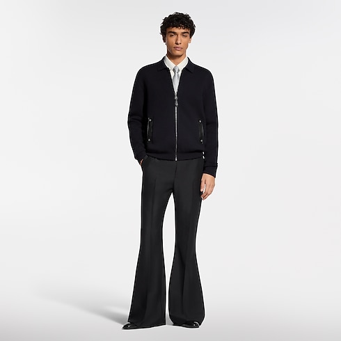 This blue-black knitted wool blouson is a contemporary yet timeless piece. It is accented with tone-on-tone leather details, including piped pockets and a zipper puller adorned with Monogram Flower rivets. It can be styled in many ways: as an elegant outer layer or under a coat, dressed up with a shirt, or more casually with a t-shirt.