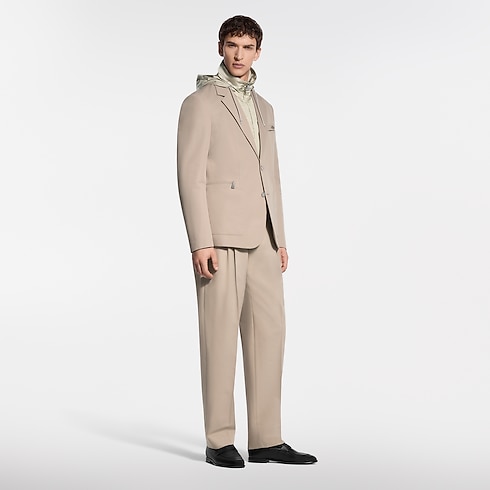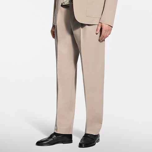 These beige wool-cotton twill pants are a timeless wardrobe essential. They have an elegant double-pleated front and are signed with tone-on-tone embroidery on the right pocket and a woven LV label on the rear waistband. Pair with a matching jacket for a modern twist on the suit, or style with separates for a preppy look.