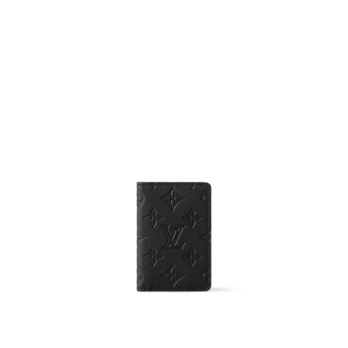 Made from grained LV Aerogram cowhide-leather, this Pocket Organizer is signed with LV Initials in matching-colored metal. This compact wallet is designed to optimize functionality while minimizing size. The wallet boasts three card slots and five pockets inside, an outside pocket on the back, and slips easily into any pocket.