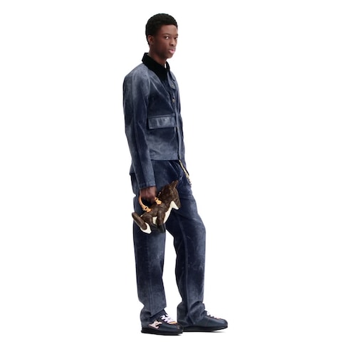 The LV Buttersoft sneaker comes in smooth calf leather with a denim effect. Designed by Men's Creative Director Pharrell Williams, this model nods to the 1960s, when sneakers first became a fashion item. It is notable for its exceptionally soft, padded upper and refined detailing, including emblematic natural leather trim and a dynamic LV Initials signature.
