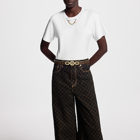 The LV Circle Prime buckle adds a distinctive signature accent to this slim, versatile belt. The reversible design features the House’s emblematic Monogram canvas on one side, and on the other cream-colored calfskin for a dressier effect. Easy to match with formal or casual outfits, it’s the perfect companion to a pair of LV Circle Prime shoes.