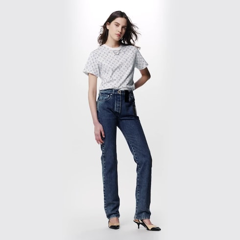This T-shirt in soft cotton jersey from the LV Escale Summer capsule is printed with the iconic Monogram on the inside for a subtle faded effect. Flattering, breezy cap sleeves and a chain detail at the neck give this fresh, relaxed summer essential a dressy touch.