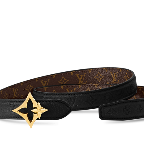 The slim and sophisticated LV Flowergram 20mm belt emanates contemporary elegance. Its reversible design offers a choice of Monogram canvas for a classic look or Monogram Empreinte calfskin for a more understated signature. But its main feature is the delicate, feminine buckle, outlining a double Monogram Flower in gold-toned metal.