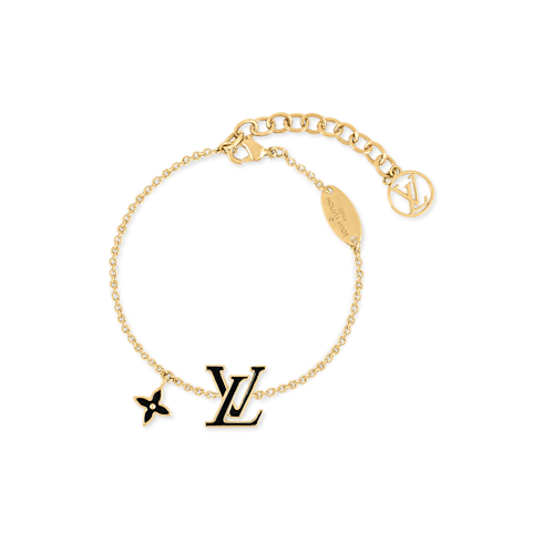 The elegant design of the LV Iconic Enamel bracelet combines a trio of beloved House icons. The LV Initials and a Monogram Flower, crafted in gold-tone metal and heightened with colorful enamel, are echoed by an LV Circle charm on the adjustable chain. Easy to wear, this resplendent bracelet adds a touch of feminine glamour to any look.