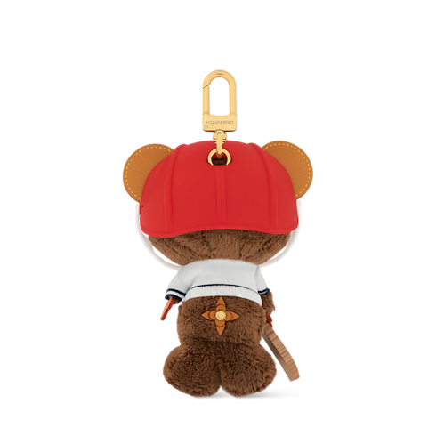 This LV Louis Bear Cricket bag charm transforms the beloved House character into a globe-trotting sportsman wearing a textured sweater and bold red visor. The playfully sized collectible also boasts a cricket bat and leather Monogram Flower paws, honoring the elegance of the sport and the Louis Vuitton heritage. Please note the products are hand made and showcasing the craftmanship of the House. This is solely a bag accessory, and it must not be entrusted to children under the age of 14.