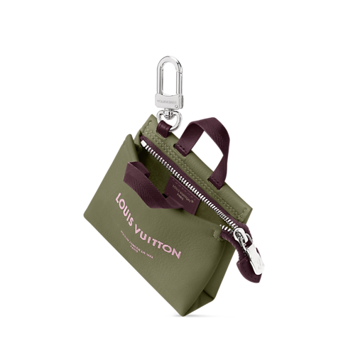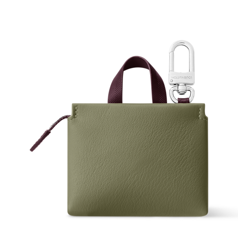 The already iconic Mini Shopper bag charm is back this season with khaki color. The miniature version of the Shopper from leather goods is the perfect companion if you are looking for a pouch to hold cards or a pair of wireless earphones. When affixed to another bag, the cheekiness cannot be denied.