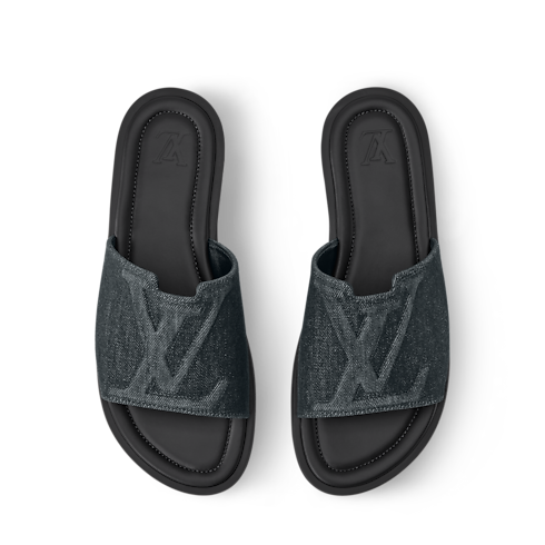 The LV Portofino mule is revisited in denim for a casual-chic look that is perfect for warm days. This model is distinguished by its wide front strap with a raised LV Initials signature, which is outlined with contrast stitching. It is finished with a supple, lightweight rubber outsole.