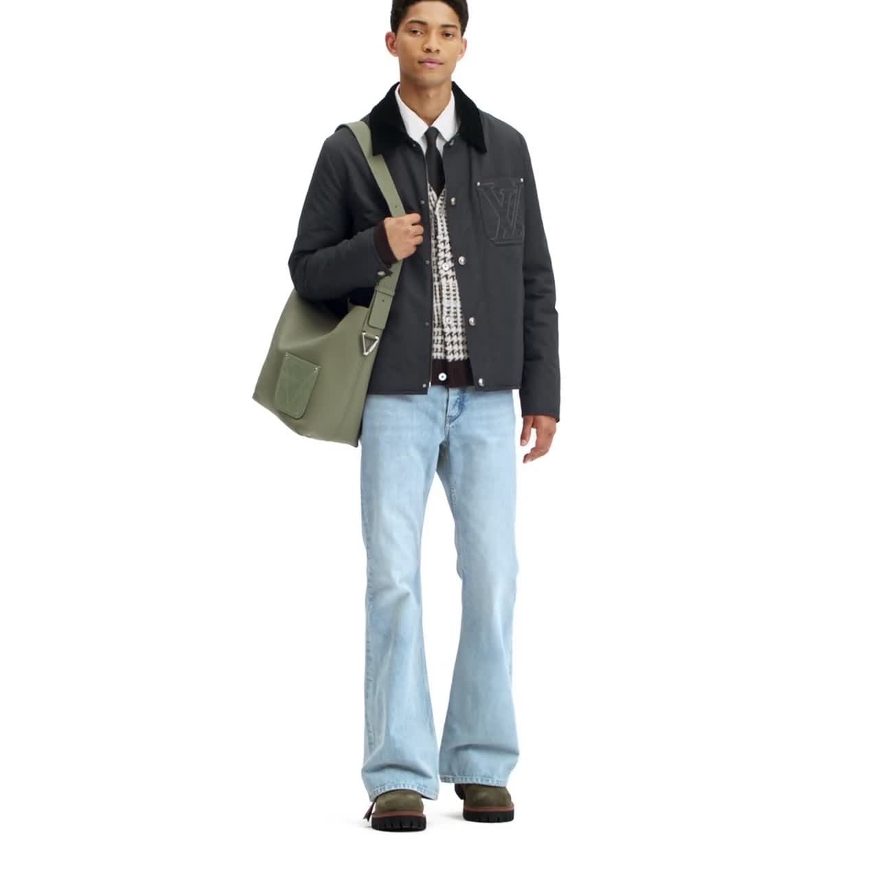 The LV Remix derby is crafted from grained nubuck calf leather with water-repellent properties. Referencing classic hiking boots, this rugged, fashion-forward style is notable for its refined details, including a leather back tab with emblematic yellow stitching, a key bell in Monogram canvas, and Monogram Flower-engraved eyelets. A treaded rubber outsole completes this design.