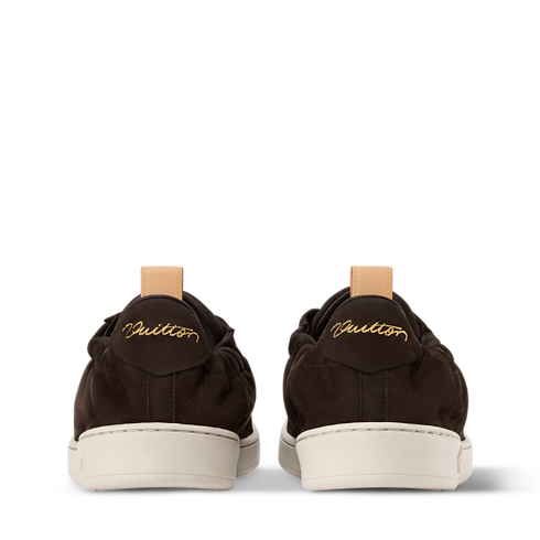 The aptly named LV Soft sneaker is distinguished by its extremely comfortable feel, the result of an upper in supple nubuck calf leather, a lightweight sacchetto construction, and a memory-foam insole. In addition to laces, this model has an elasticized heel for an easy, slip-on fit. Trim in the House's emblematic natural leather complements this design.