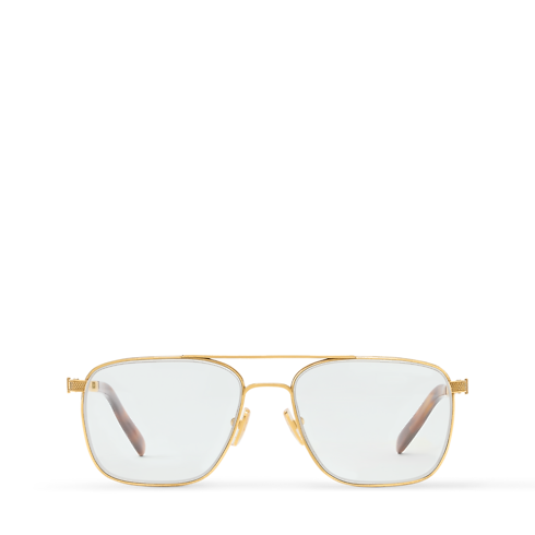 With its retro shape and subtle signature style, the LV Whisper Squared Pilot optical frame brings a fashion-forward attitude to everyday eyewear. Crafted in gold-colored metal, its temples are adorned with the iconic LV Initials for a discreet House touch. This sophisticated, timeless frame is a tribute to the Louis Vuitton woman: strong and fiercely independent.