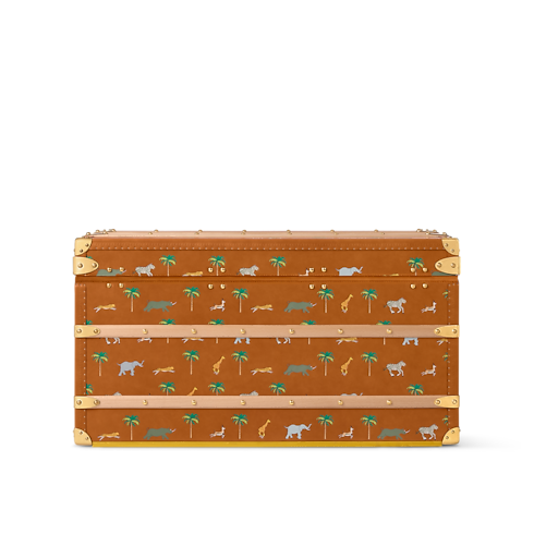 Inspired by the film, LV x The Darjeeling Limited Courrier Lozine 90 is crafted from elegant tan leather with a vintage allure. Colorful illustrations of animals and palm trees create a preppy yet naïve aesthetic, echoing the movie’s captivating, nostalgic universe. The trunk is numbered "11" to echo the movie.