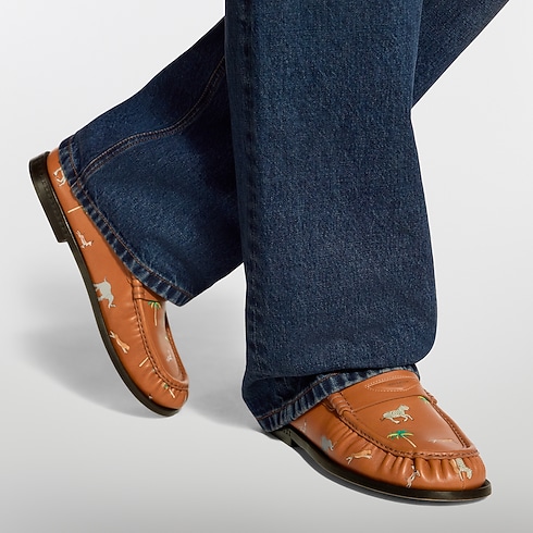 The Louis Vuitton x The Darjeeling Limited LV Jazz loafer takes inspiration from the luggage created by the House for the 2007 movie, set in India. The upper in fine calf leather is printed with a tapestry of cross-continental flora and fauna, a key theme of the Spring-Summer 2026 men's show, turning this elegant shoe into a bold fashion statement.